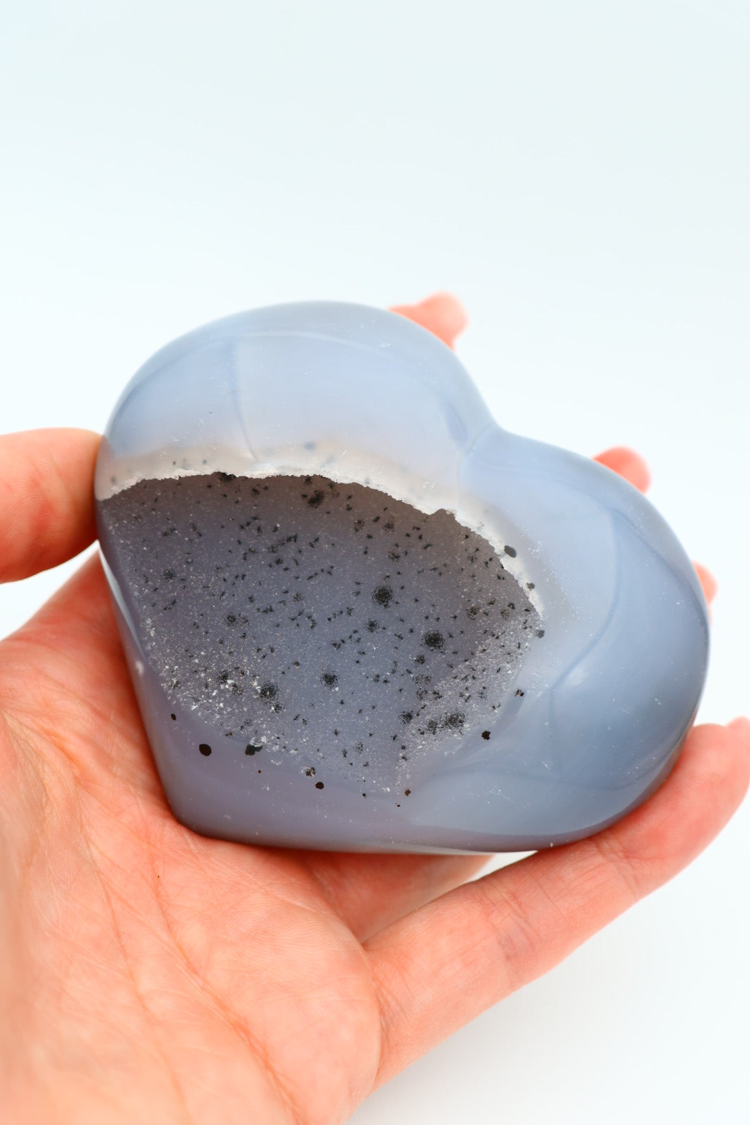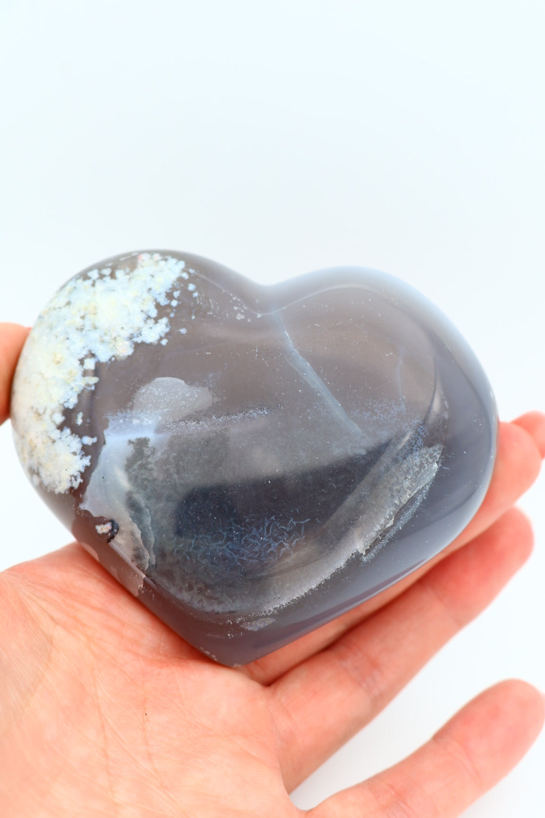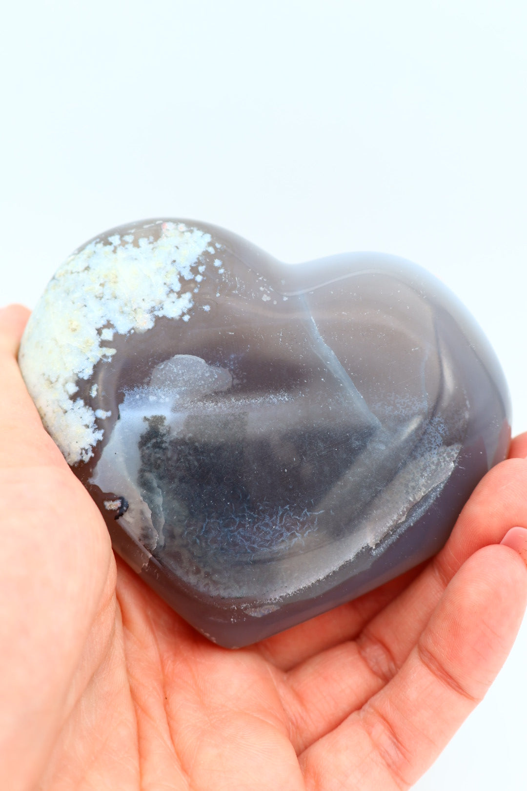 Een Agaat Druze hart van 183 gram en 7.2x6.2 cm.