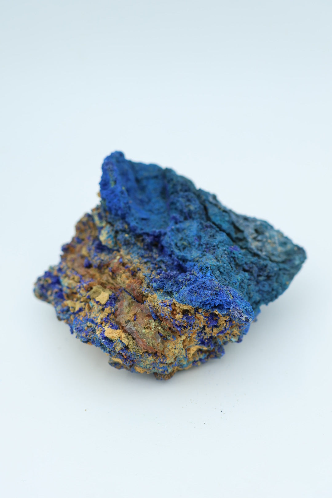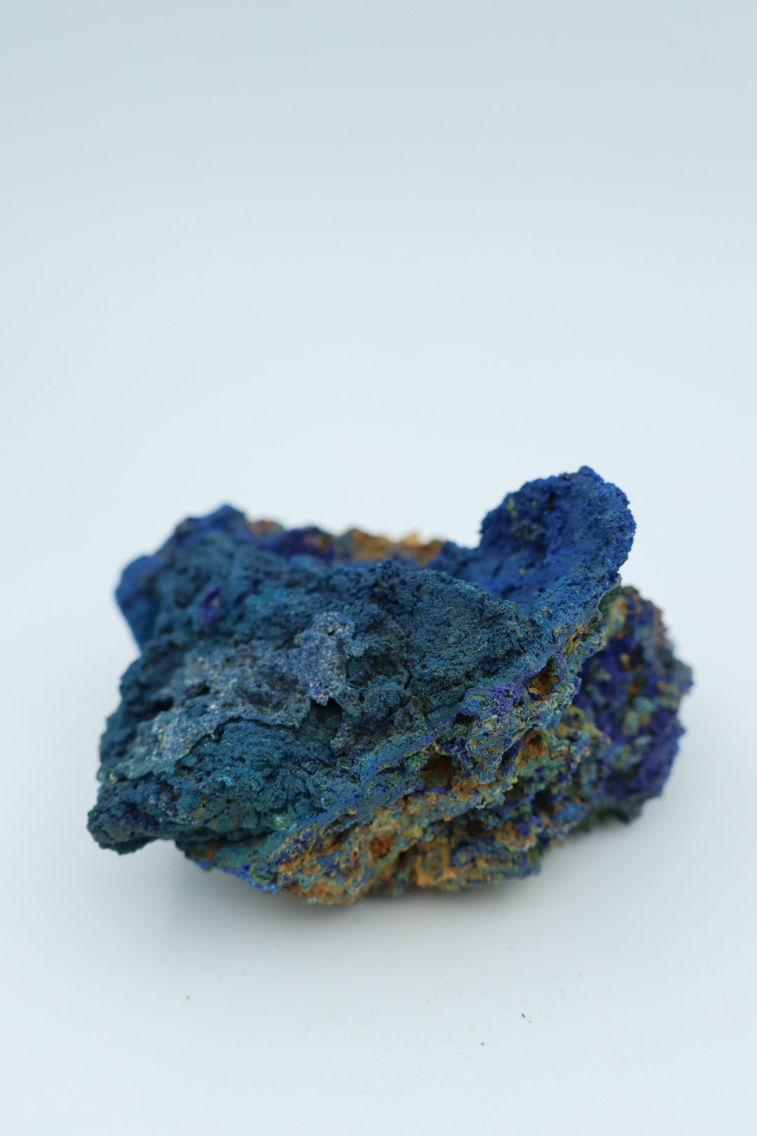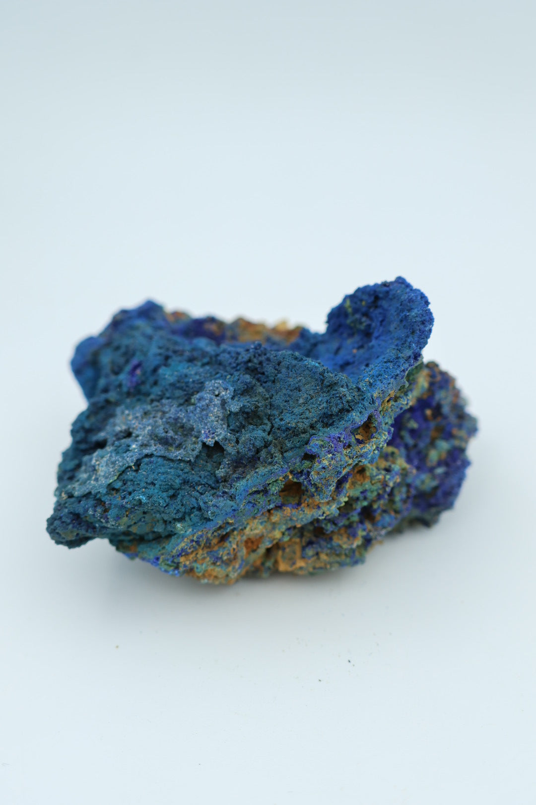 Een verfijnd mineraalspecimen waarin azuriet en malachiet in natuurlijke harmonie samenkomen. Dit 162 gram zware exemplaar meet 8,2 x 6,5 centimeter en presenteert de klassieke contrastrijke combinatie van diepblauw azuriet met smaragdgroen malachiet – beide kopermineralen die door geologische processen nauw met elkaar verbonden zijn geraakt. Elk stuk bezit zijn eigen karakteristieke tekening en kristallijne structuur, wat deze collectie geschikt maakt voor de discerning mineraalverzamelaar. Transparantie is essentieel: wat u ziet is precies wat u ontvangt, zonder retouching of kunstmatige behandeling. Een waardig aanwinst voor wie de subtiele elegantie van onbewerkte natuurlijke vormen waardeert.