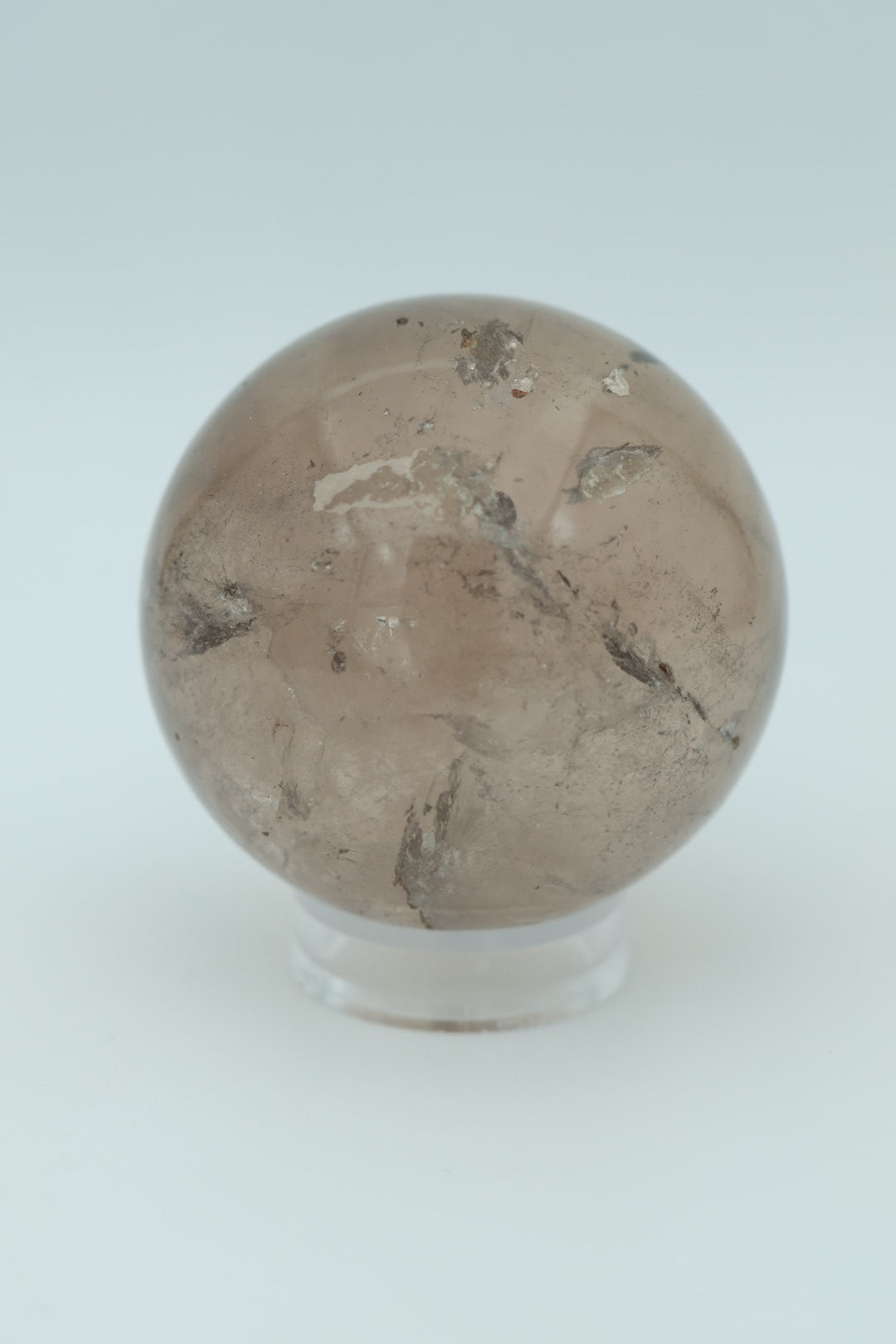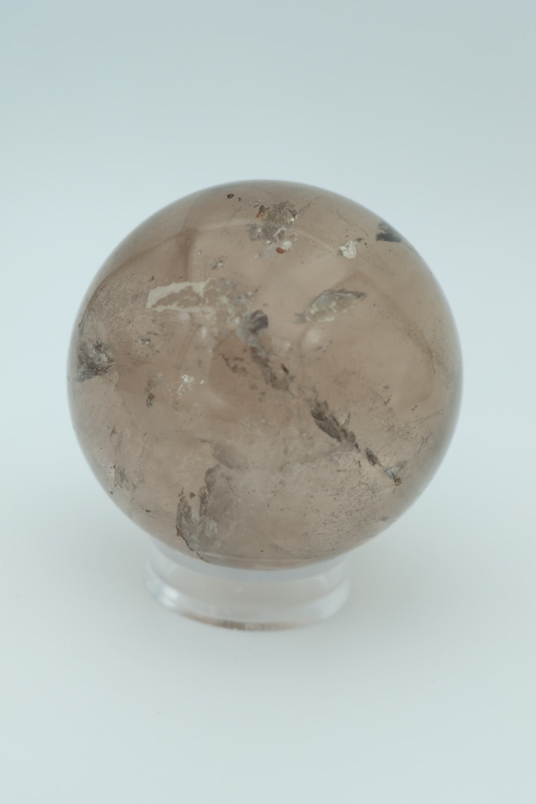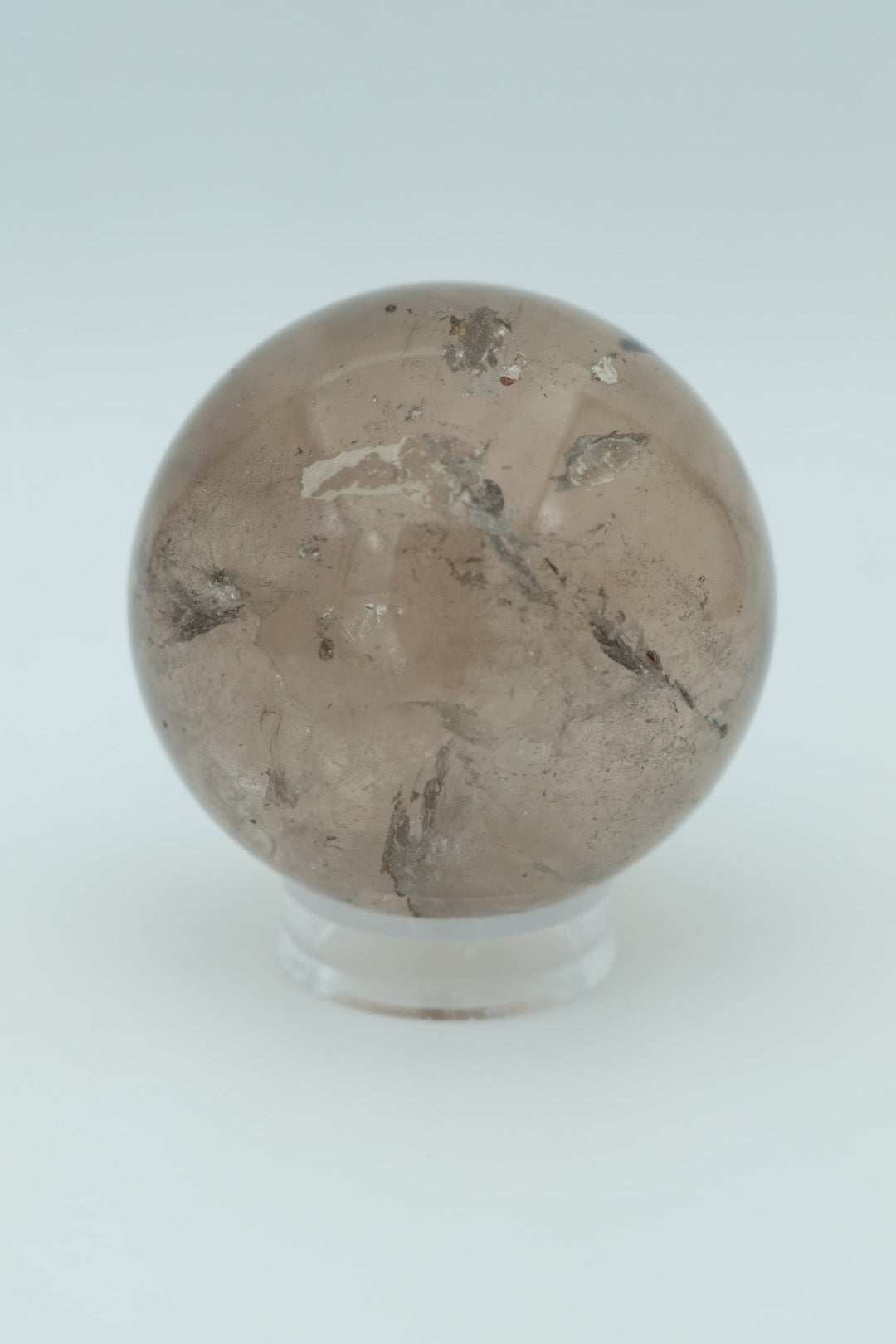 Een mooie heldere rookkwarts bol van 263 g en 5,7 cm in diameter.