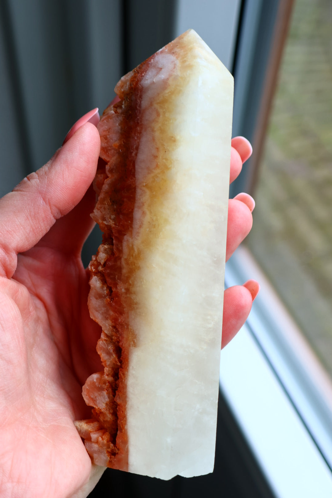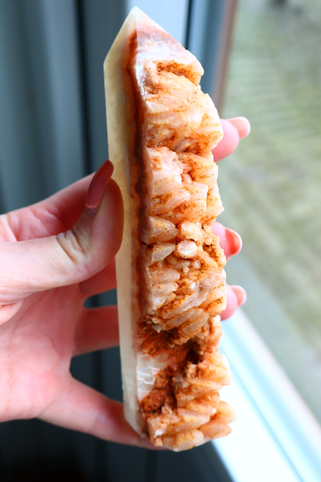 Oranje Calciet van 309 g en 14.3 bij 4.9 centimeter.