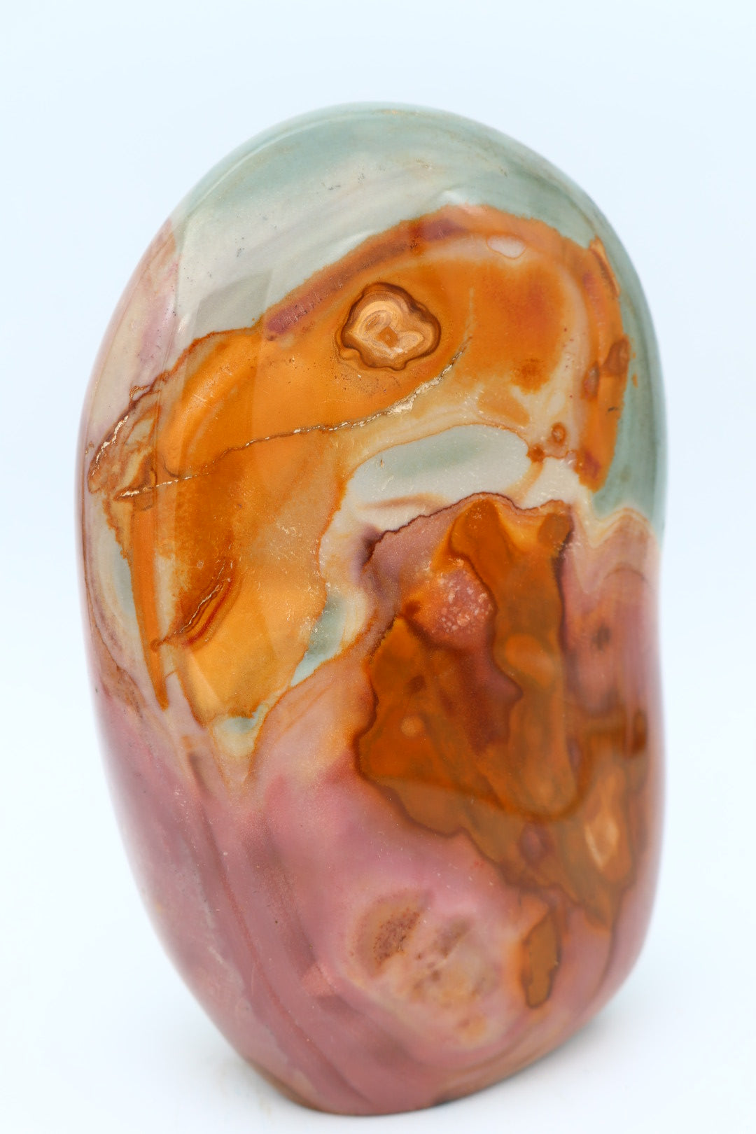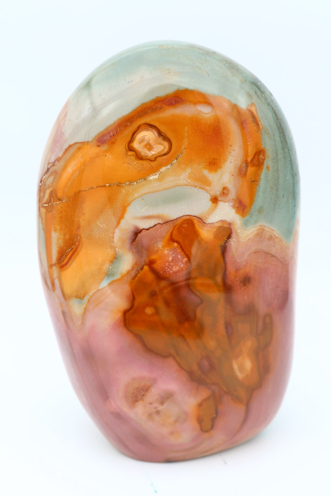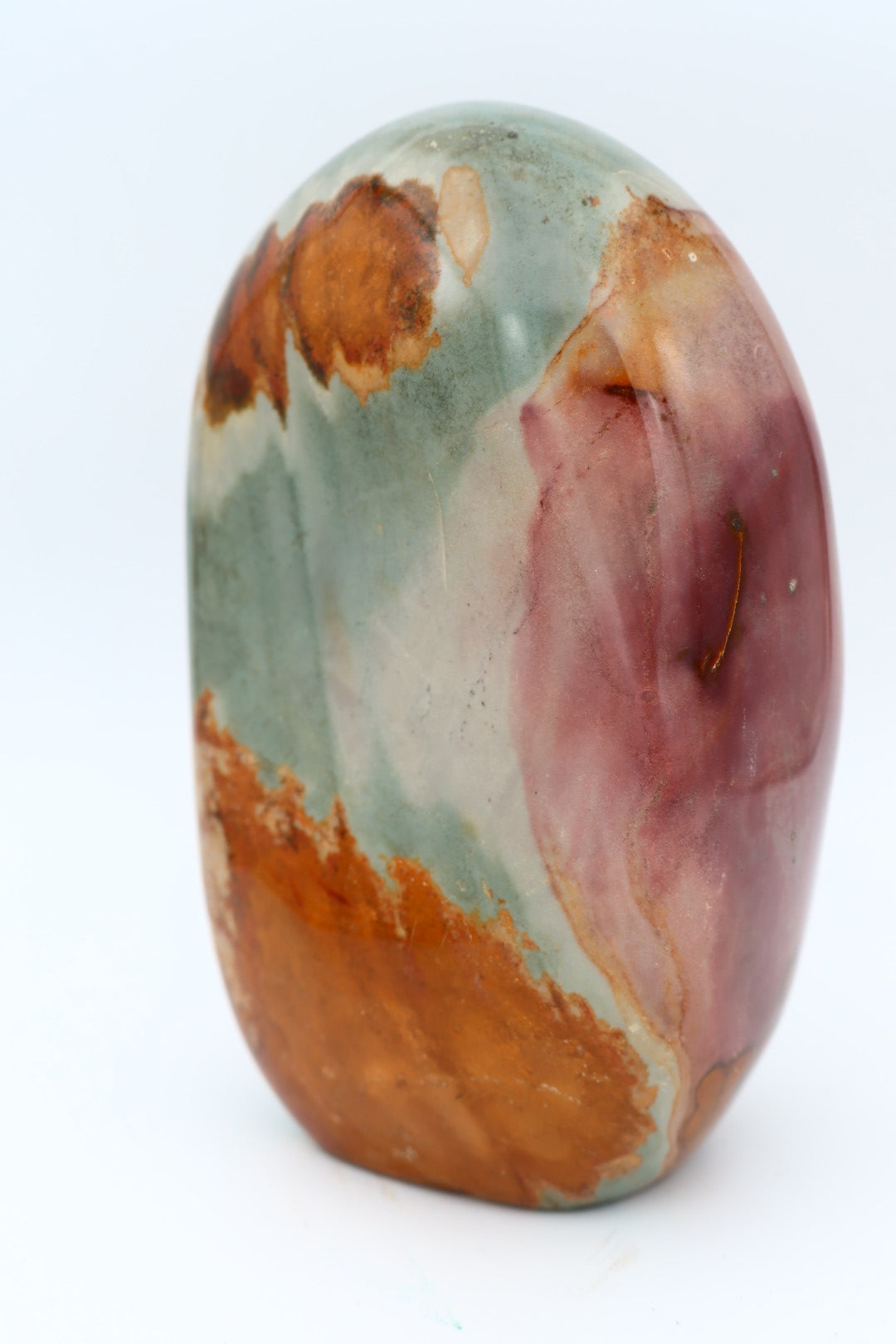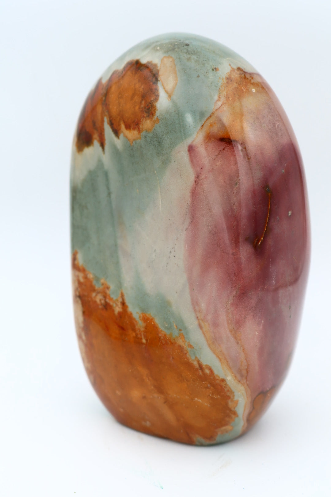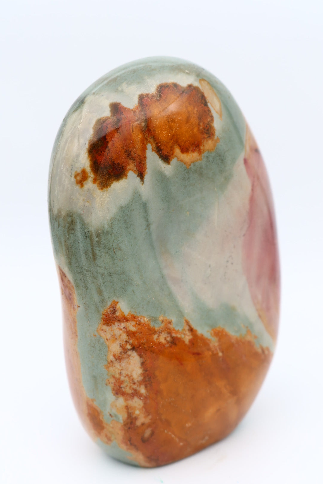 Polychroom Jaspis freeform van 1.621 kg en 13.8x8.7 cm.