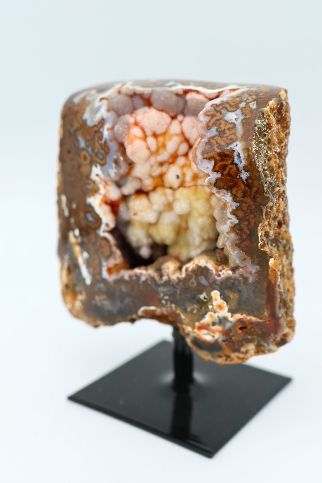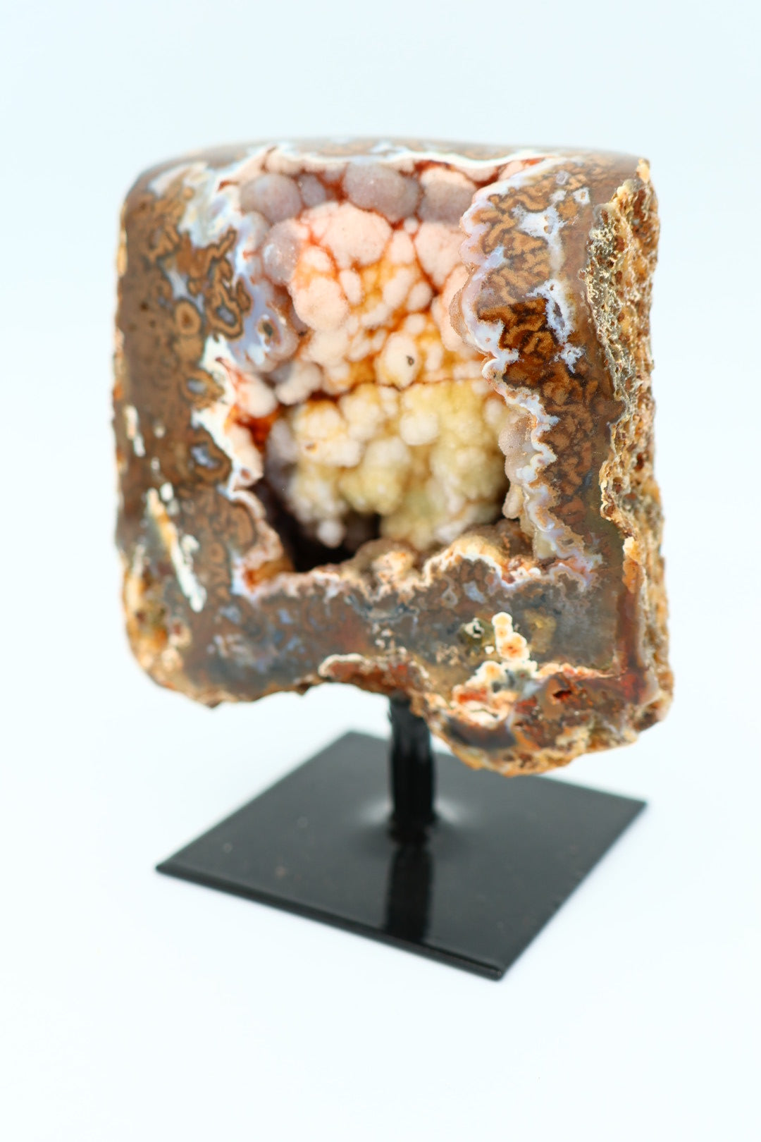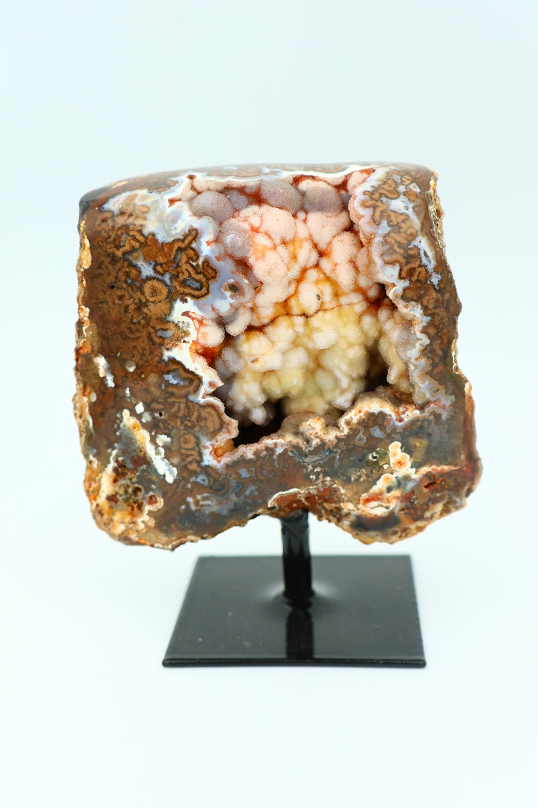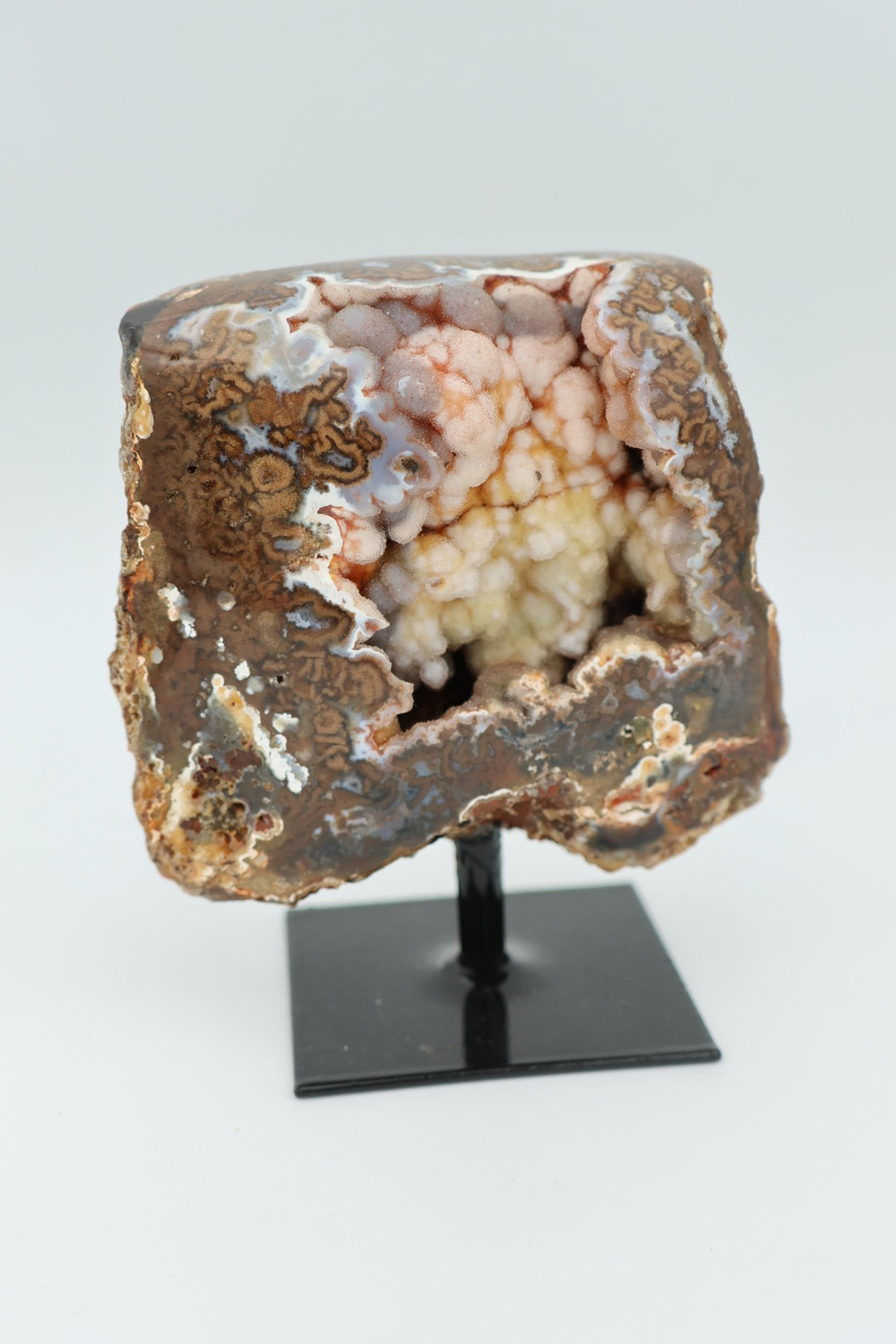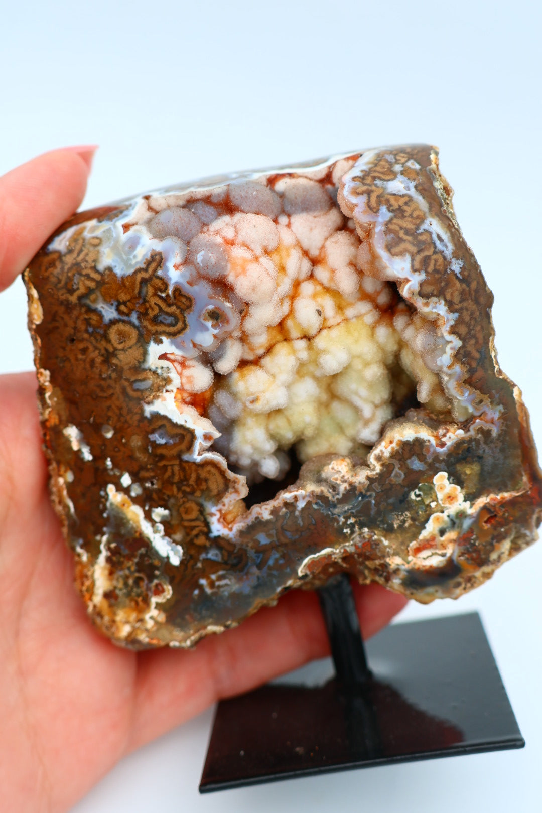Een rotsagaat op standaard van 247 g en 9,3 × 7,9 cm.