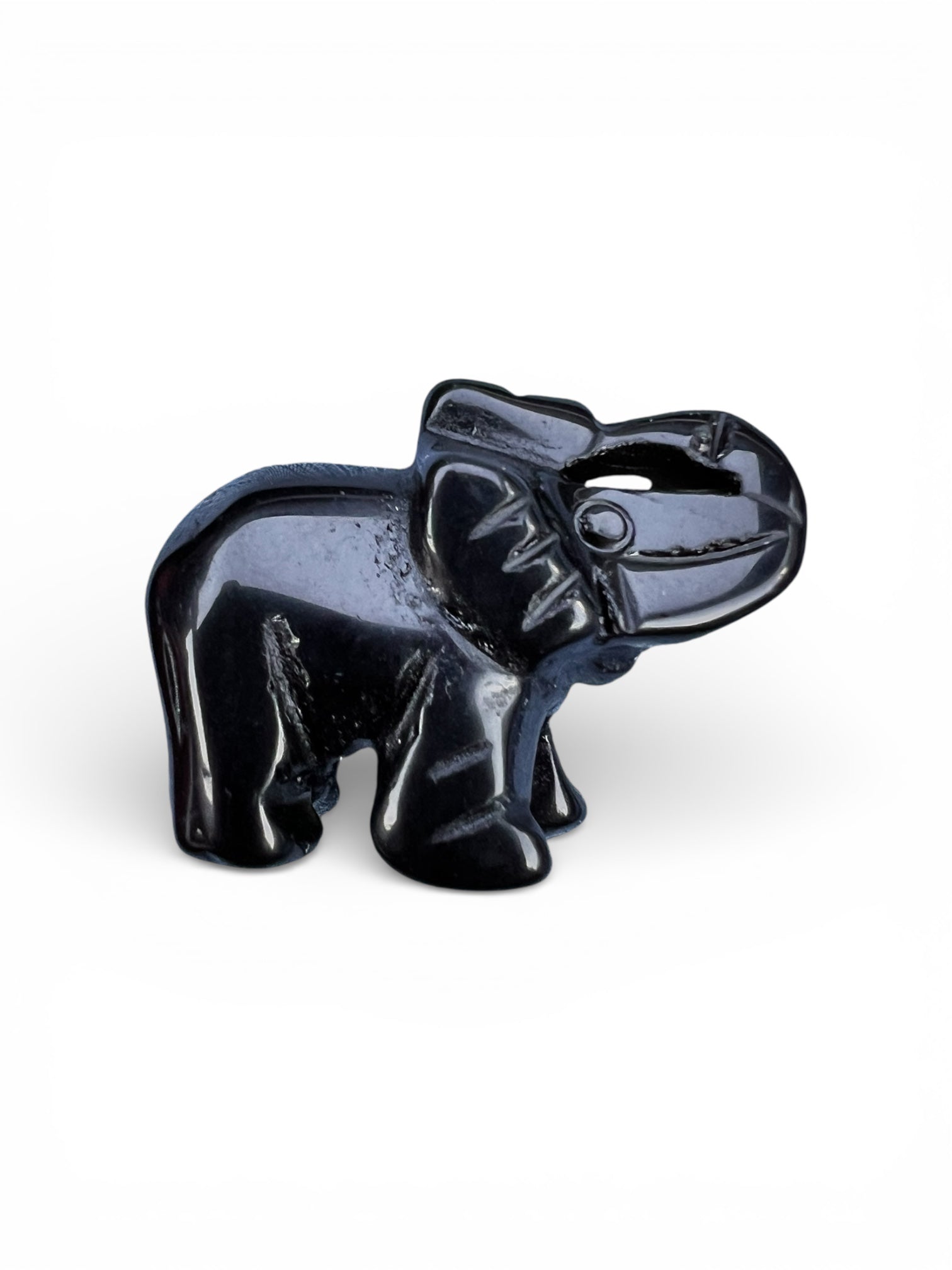 Black obsidian elephant figurine. The elephant figurine measures 3 x 2.5 cm.