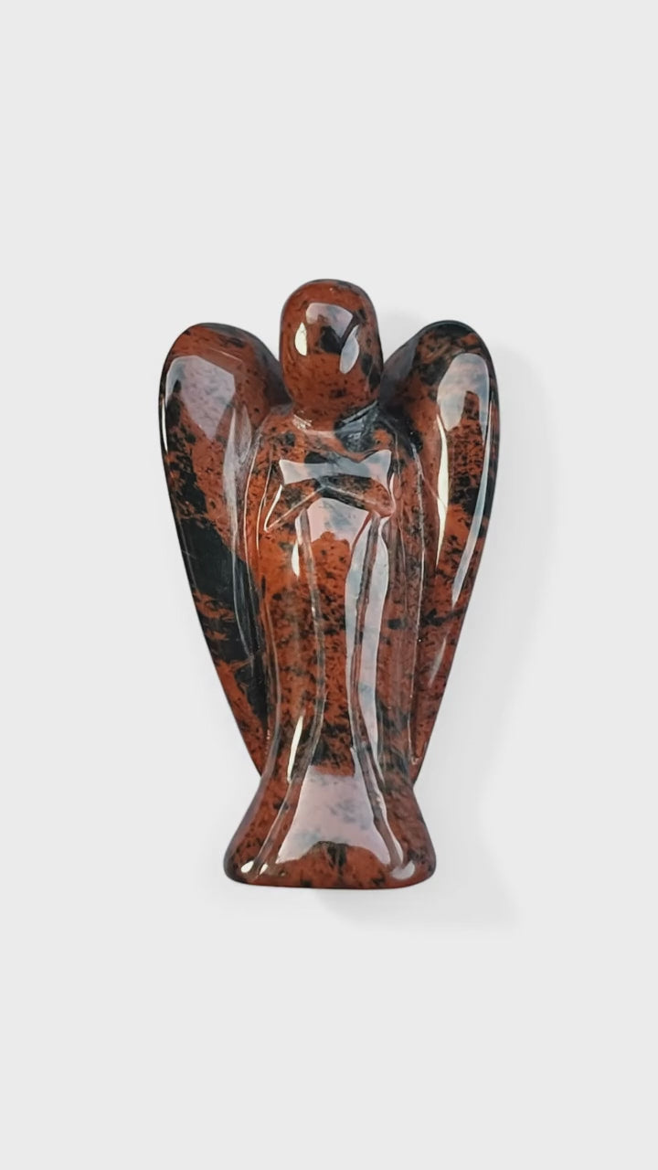 Ange en obsidienne et acajou, 6 x 3,5 cm.