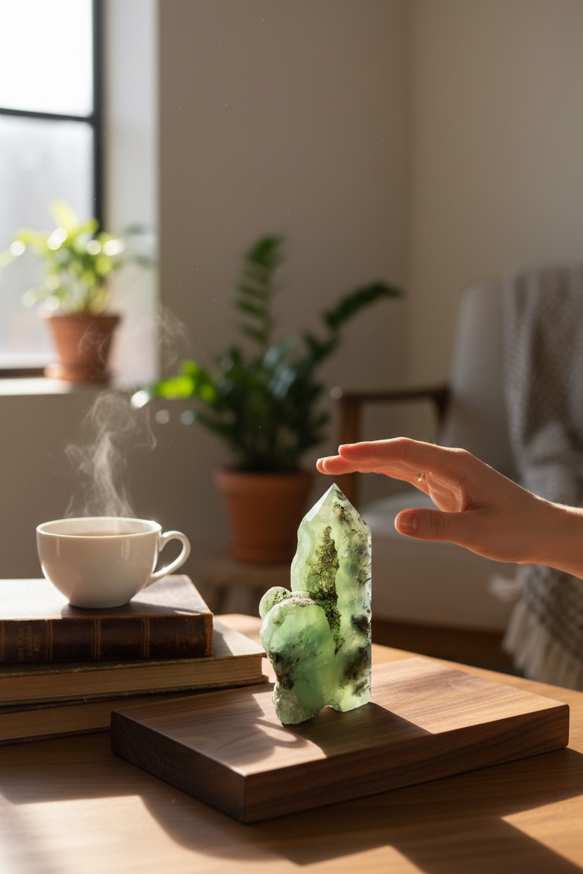 Prehniet staat bekend als een steen die rust, helderheid en verbinding met de natuur symboliseert. Het is een geliefd stuk voor verzamelaars, interieurliefhebbers en iedereen die zich aangetrokken voelt tot aardse, ethereal materialen.