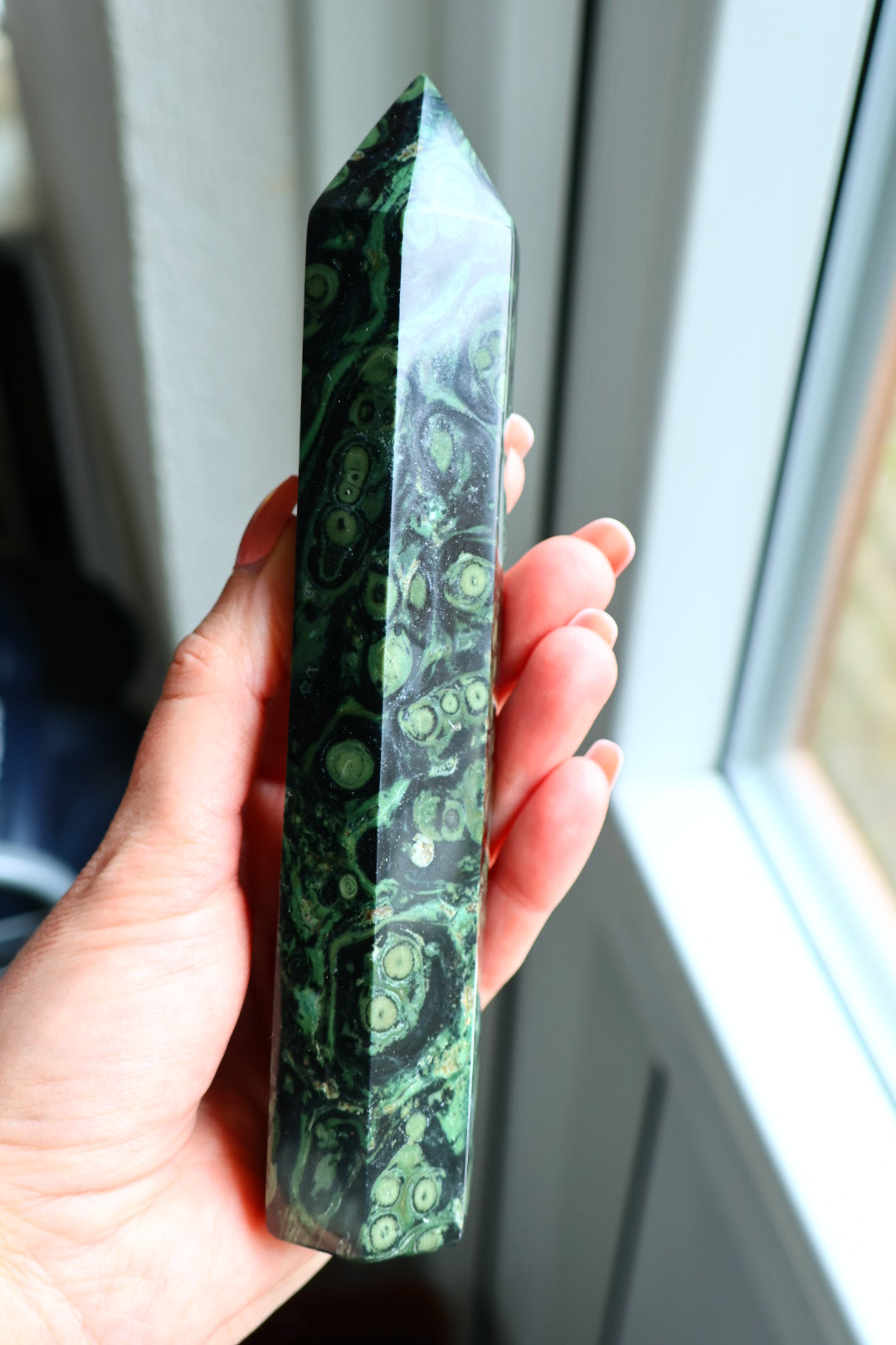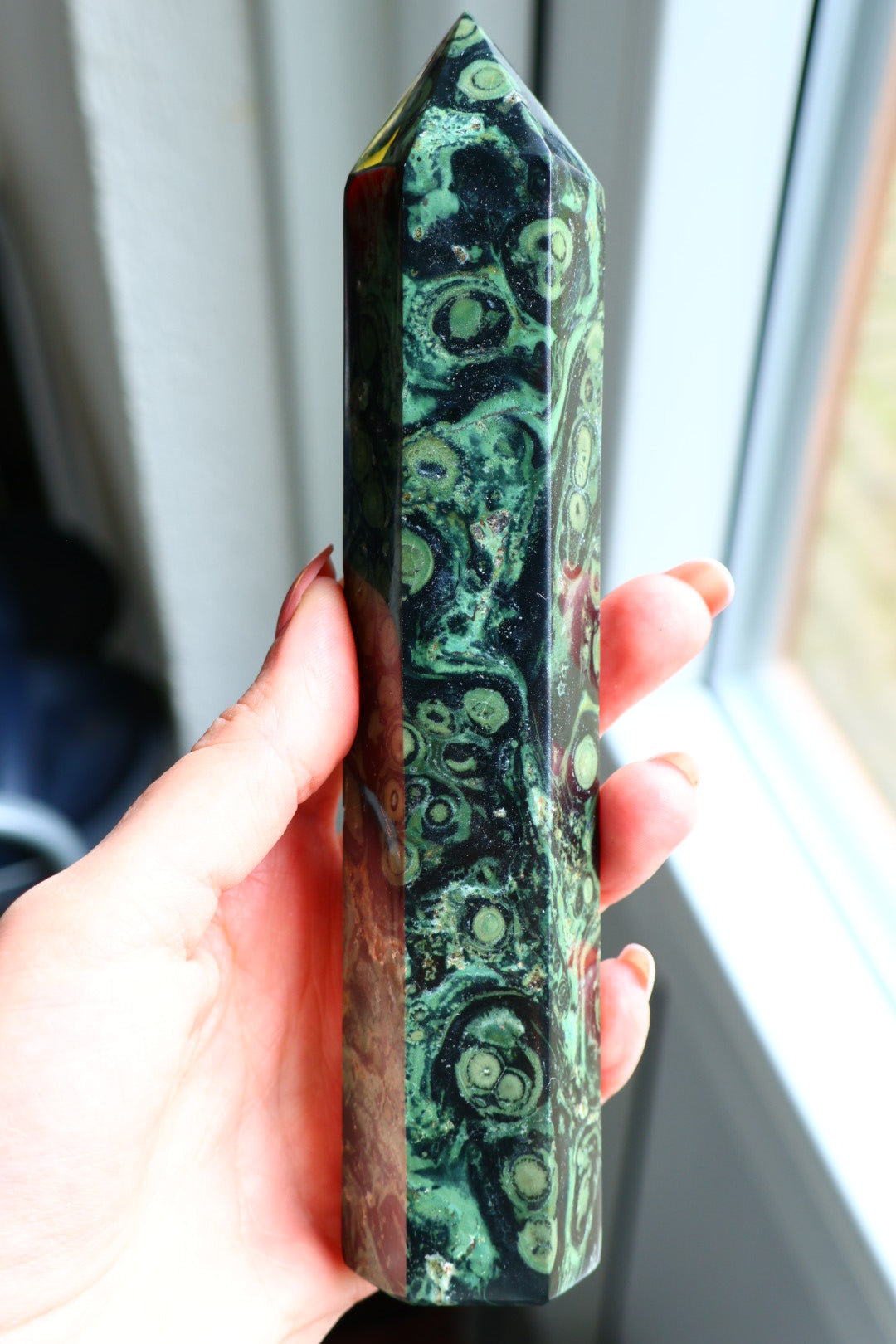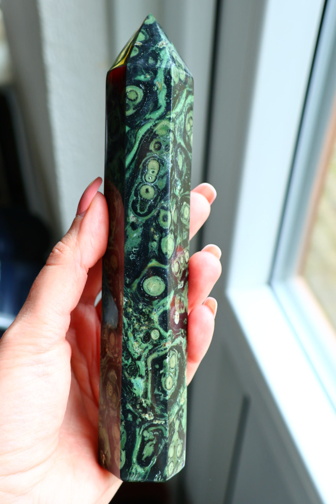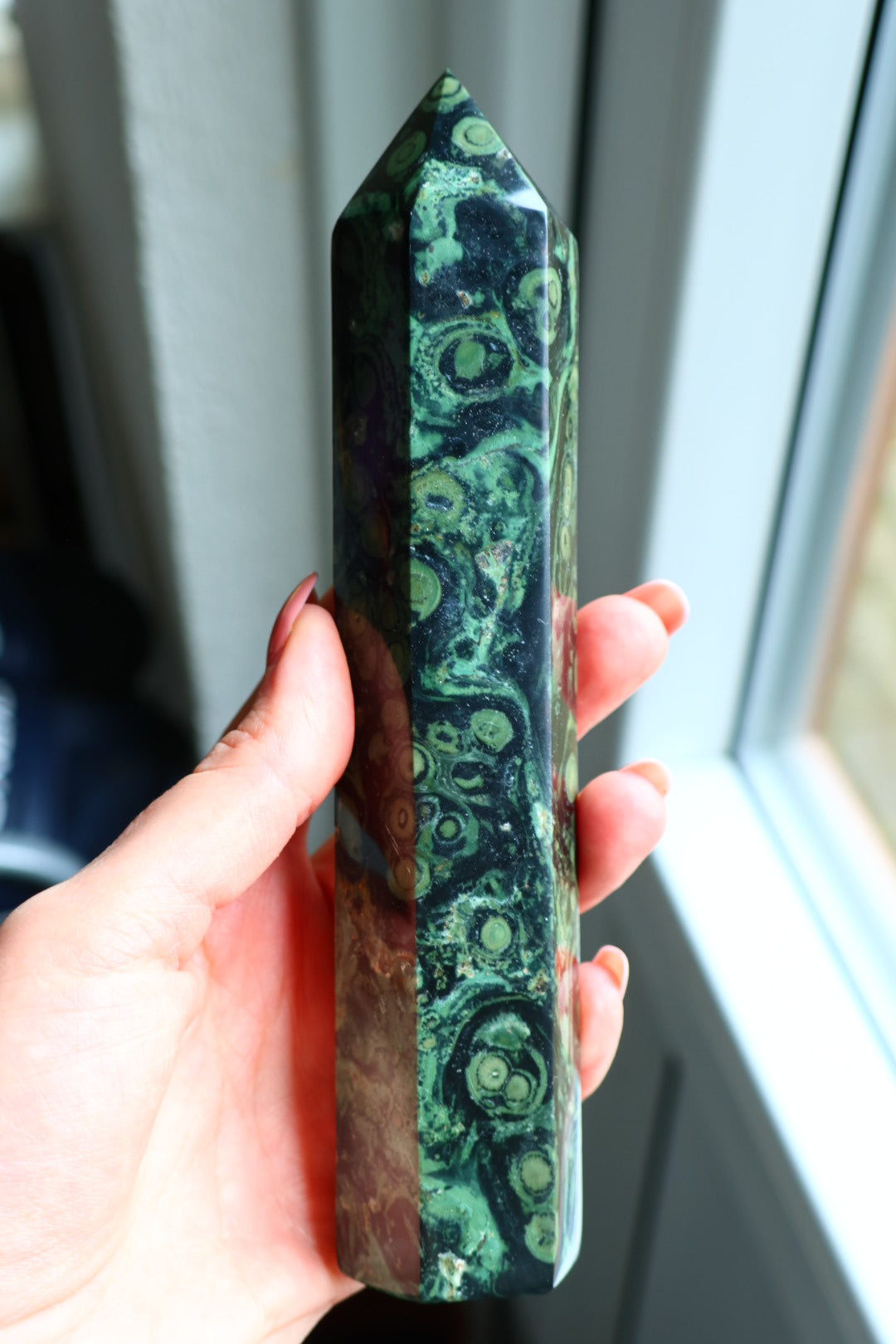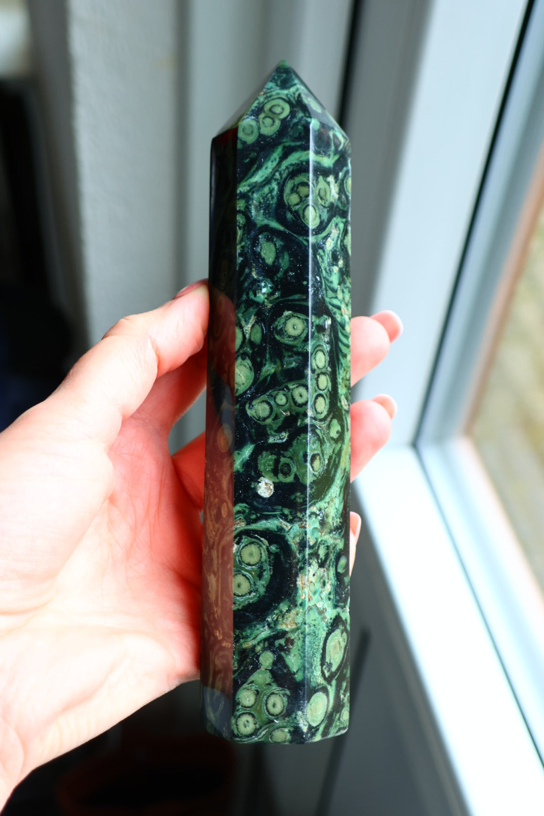 Kambaba Jaspis van 390 gram en 17.5x3.4 cm.