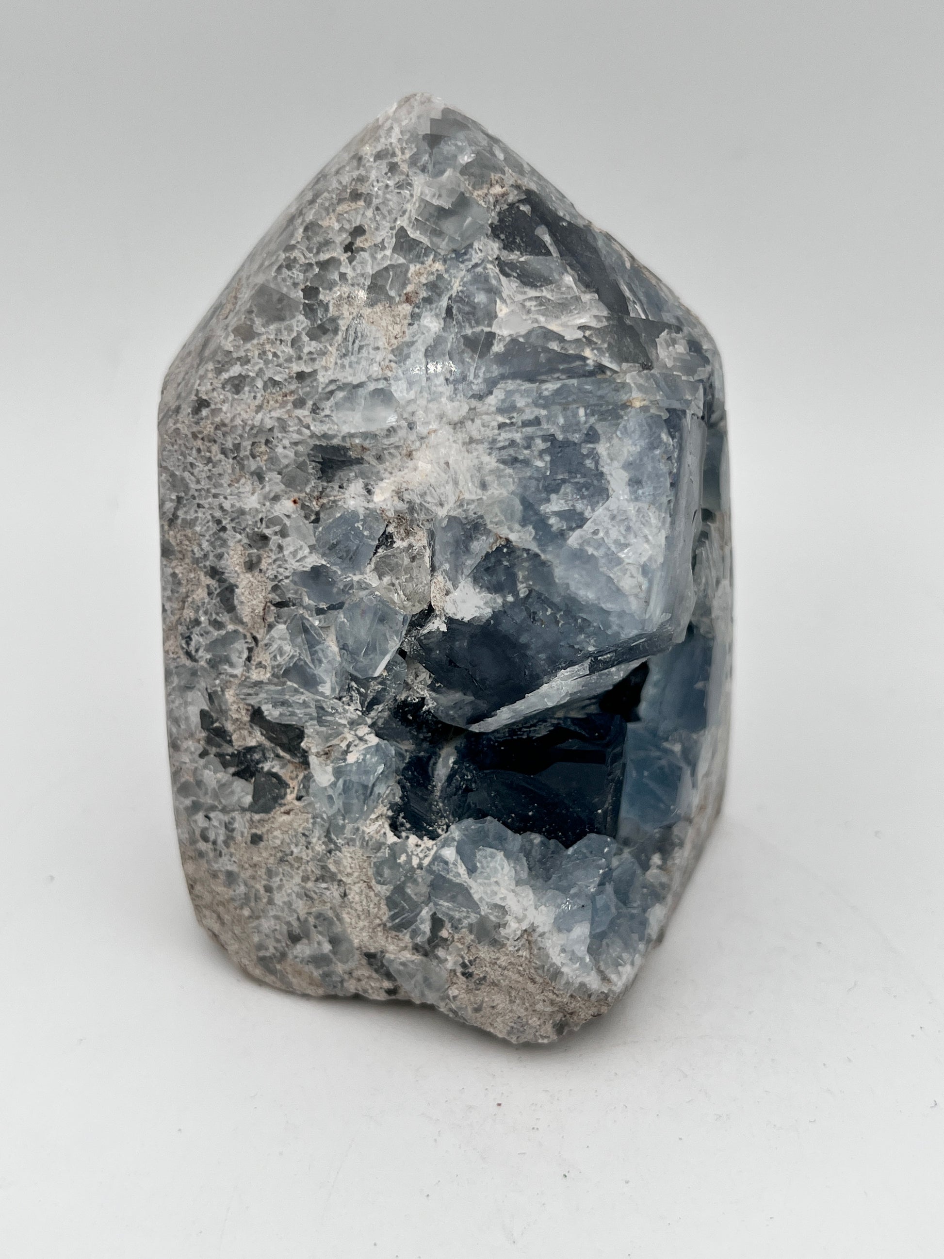 Celestien cluster punt cut base van 0.827 kg en 9x6.9 cm.