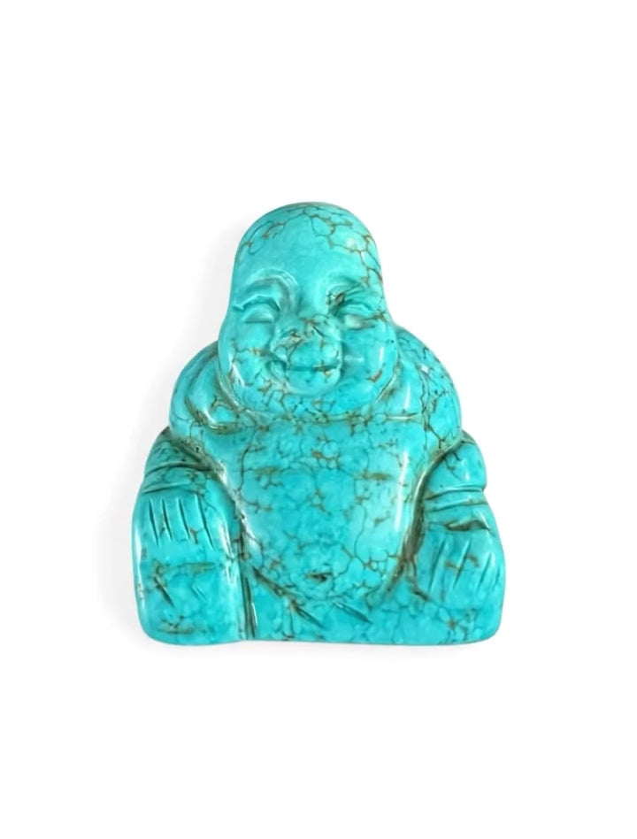 Turkoois lachende Boeddha van 5.5x4.5 cm.