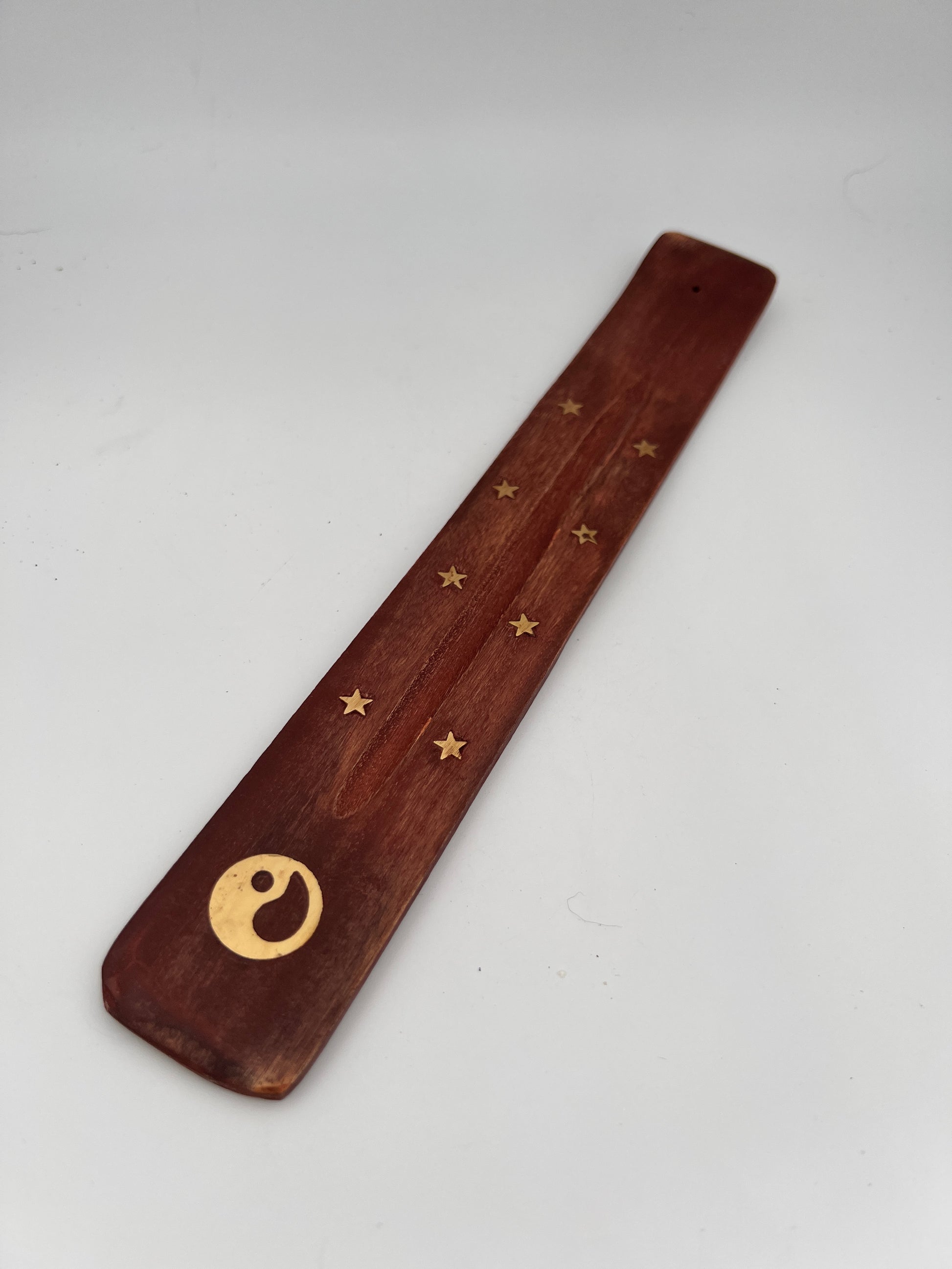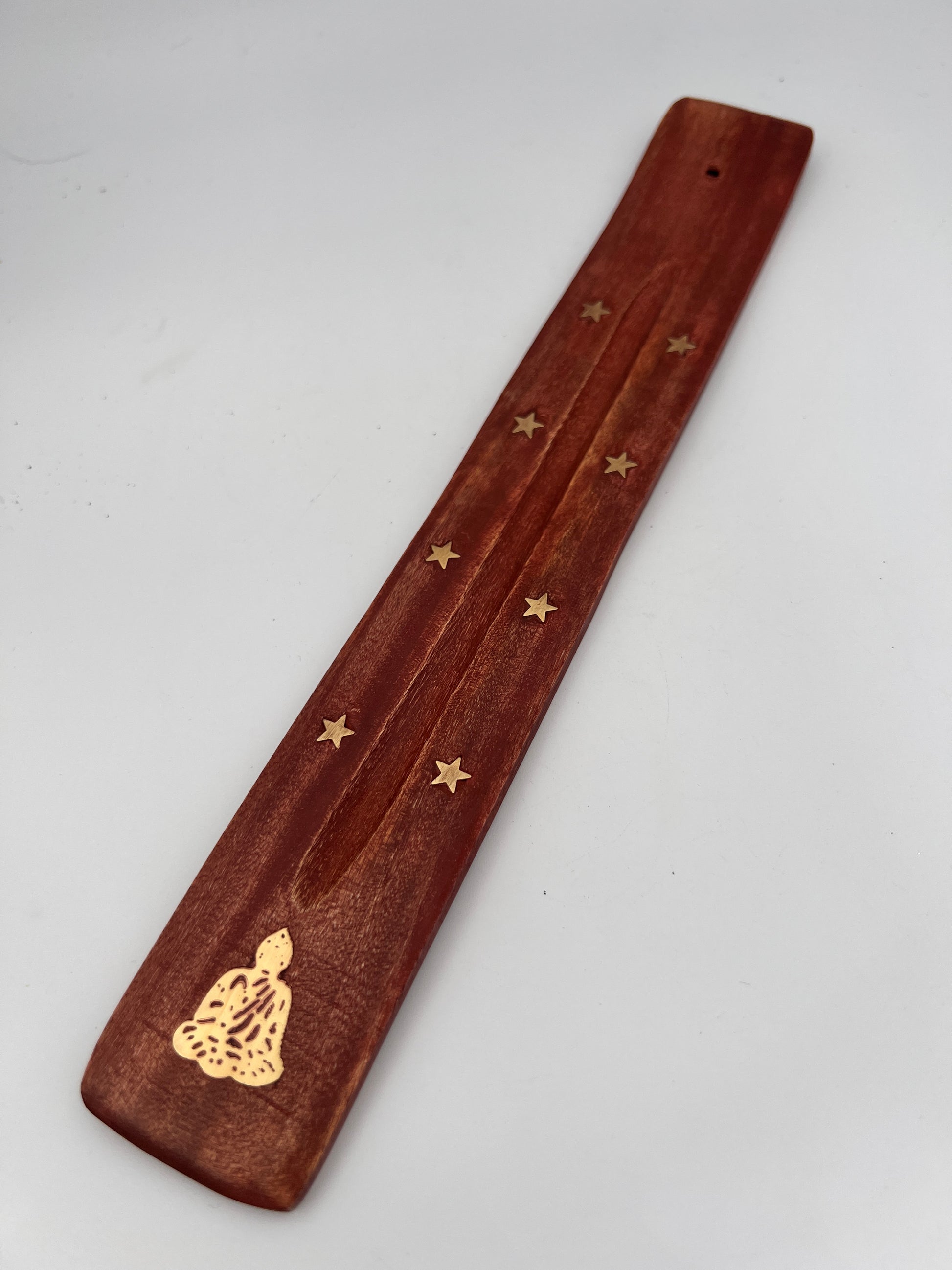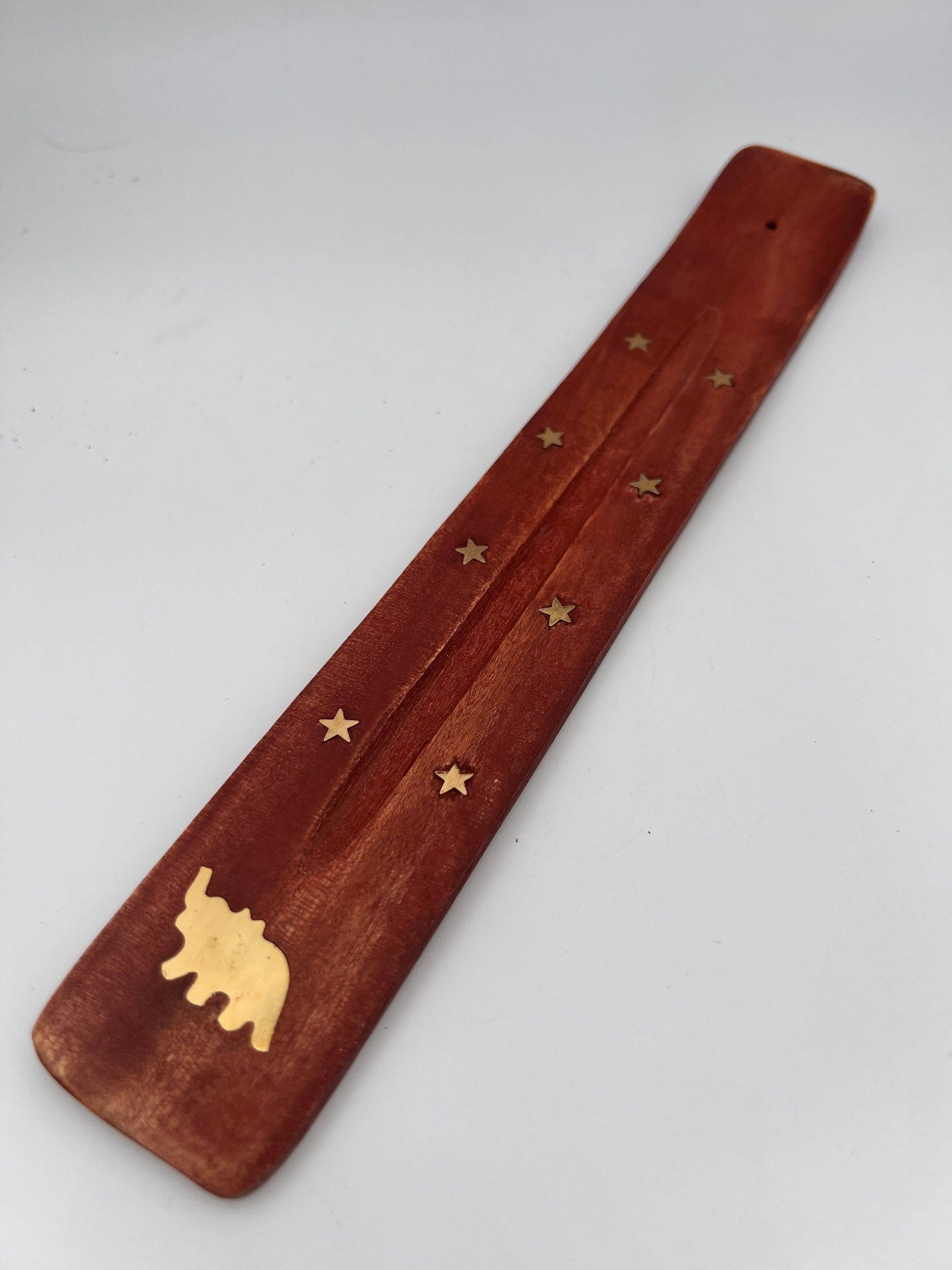 Wierookplankje met ingelegd metalen figuur. Geschikt voor het branden van dunnere wierookstokjes, zoals Japanse wierook, Marco polo wierook, Yoga wierook, Aartsengelen wierook, Agarbatti, Masala en Satya wierook.