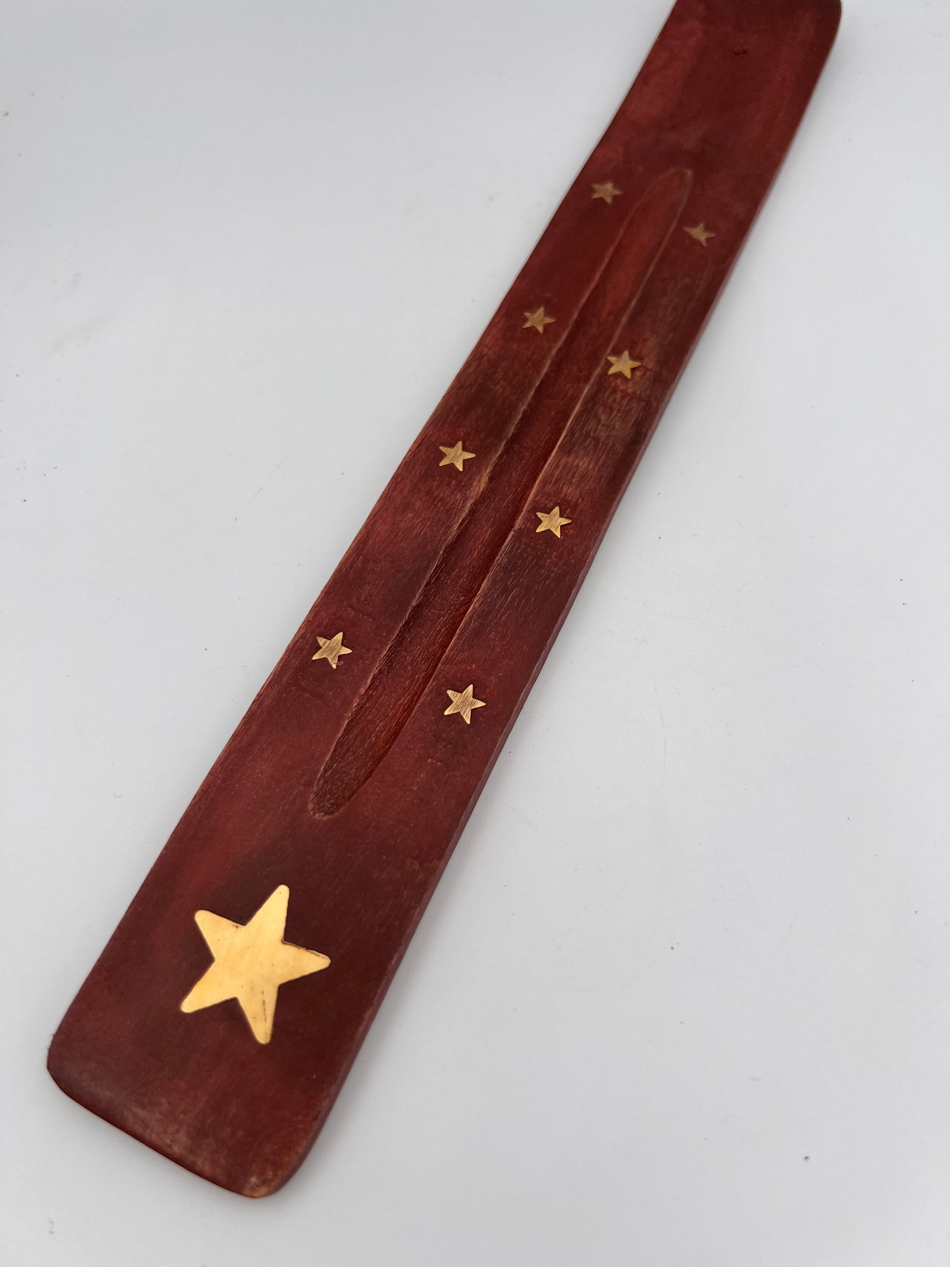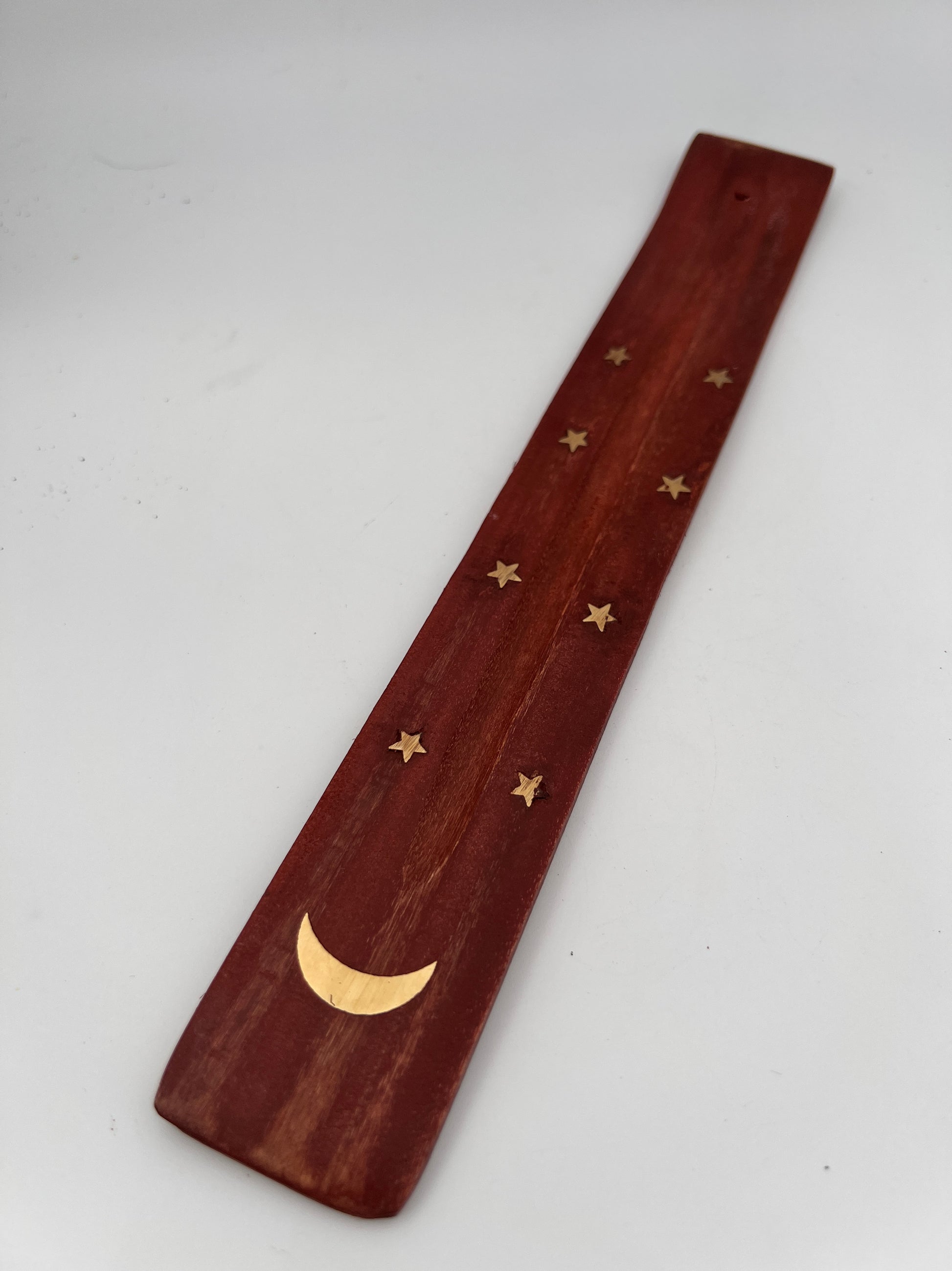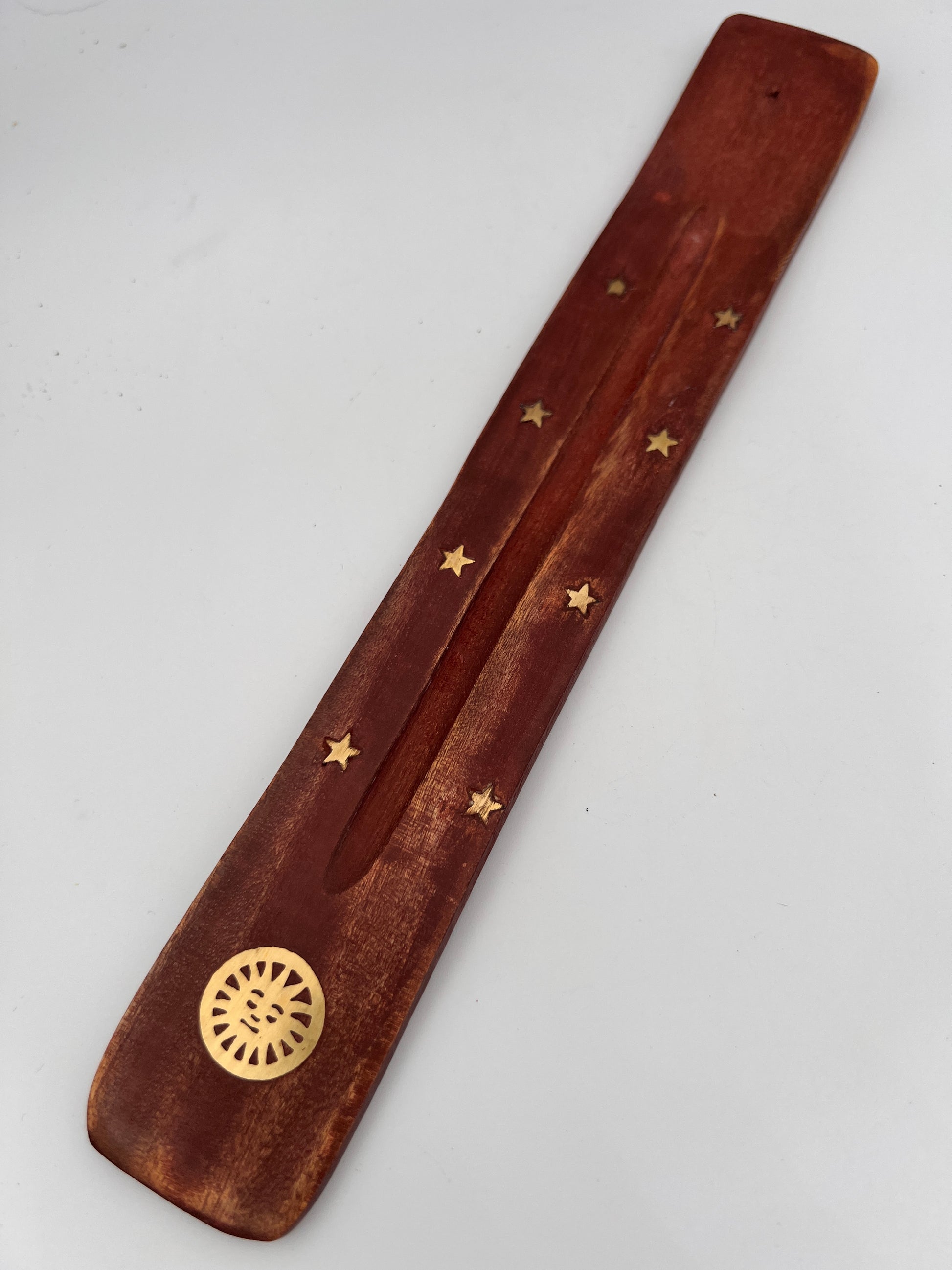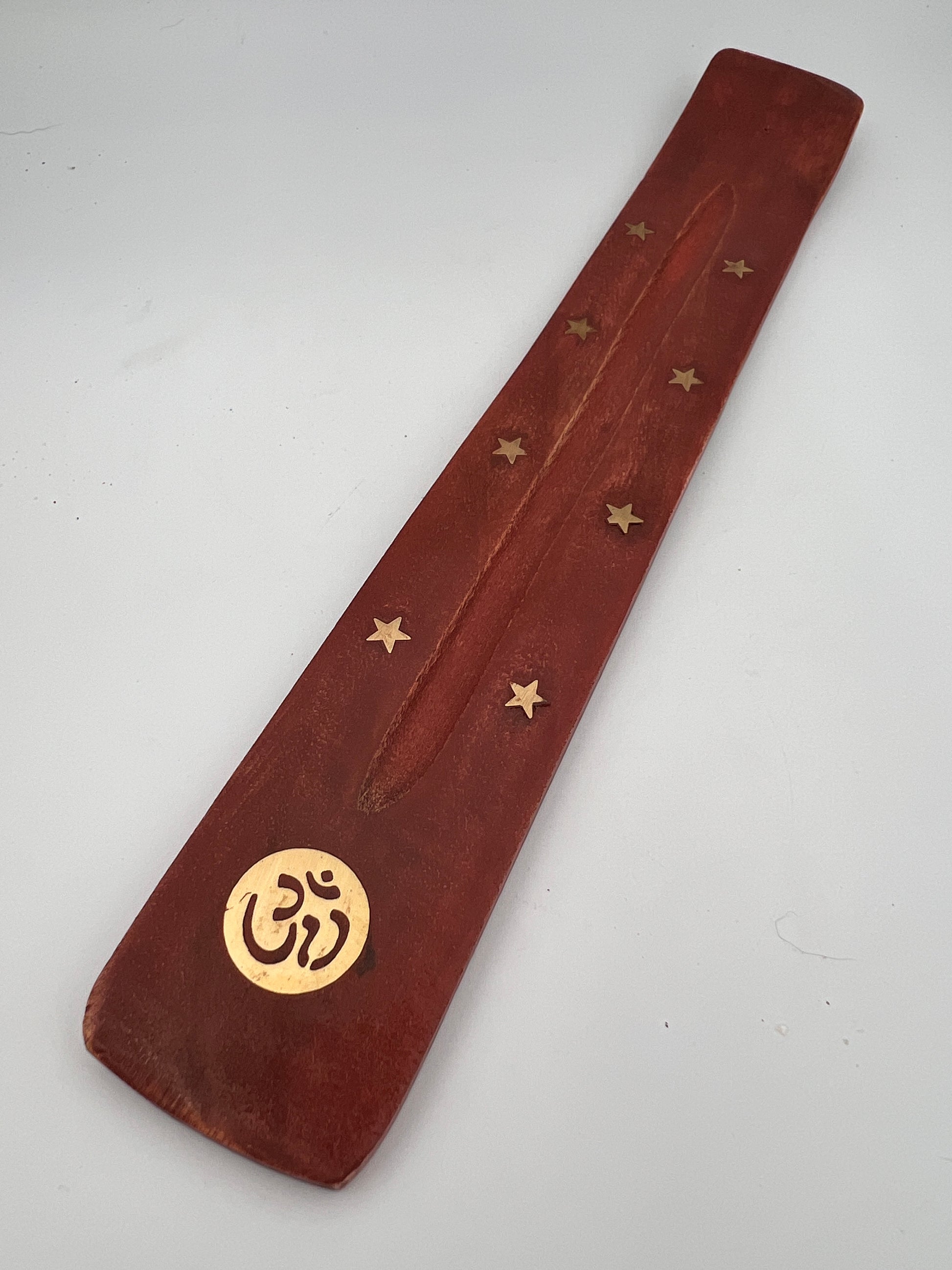 Wierookplankje met ingelegd metalen figuur. Geschikt voor het branden van dunnere wierookstokjes, zoals Japanse wierook, Marco polo wierook, Yoga wierook, Aartsengelen wierook, Agarbatti, Masala en Satya wierook.
